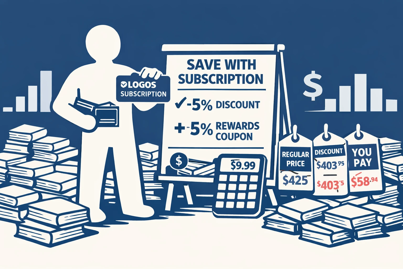 Wenn Sie keine der zusätzlichen Funktionen von Logos-Abonnements benötigen, aber Bücher oder Sammlungen so günstig wie möglich kaufen möchten, kann ein kurzes, strategisches Abonnement erhebliche Einsparungen bringen.